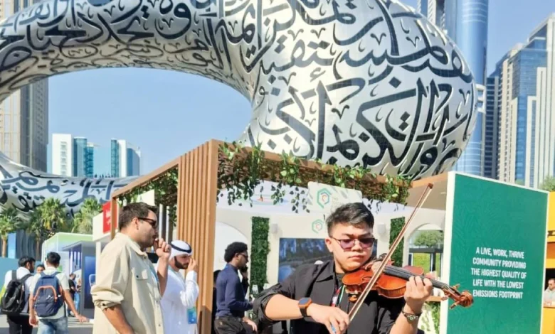 وقف هناك إيان كريس، موسيقي فلبيني، يحمل آلته البسيطة، ليقدم لزوار القمة تجربة مختلفة، تعزف فيها البهجة قبل الكلمات.