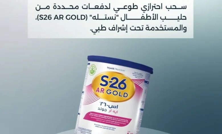 مؤسسة الإمارات للدواء تعلن سحباً احترازياً طوعياً لدفعات محددة من حليب الأطفال نستله (S26 AR GOLD)