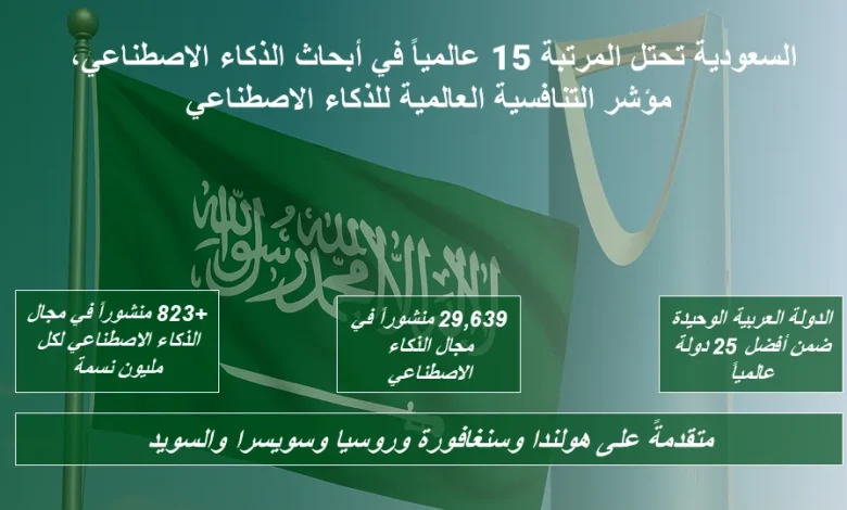 السعودية تحتل المرتبة 15 عالمياً في “مؤشر التنافسية العالمي للذكاء الاصطناعي”