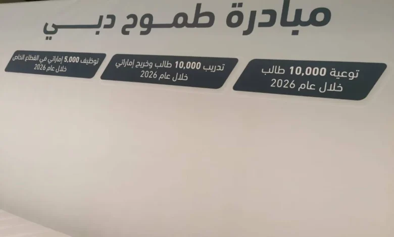 أطلق مجلس تنمية الموارد البشرية الإماراتية اليوم خلال ملتقى دبي للتوطين مبادرة طموح دبي التي تستهدف توظيف 5000 إماراتي في القطاع الخاص خلال العام الجاري وتوعية 10 آلاف طالب وتدريب 10 آلاف طالب وخريج إماراتي خلال عام 2026.