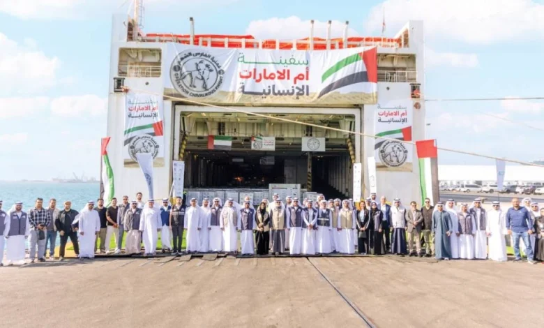 وتحمل سفينة «أم الإمارات» مساعدات غذائية وإغاثية متنوعة ضمن سلسلة مبادرات دولة الإمارات في إطار عملية «الفارس الشهم 3»، بهدف الاستجابة السريعة للأوضاع الإنسانية في قطاع غزة والتخفيف من أعباء الأسر المتضررة.