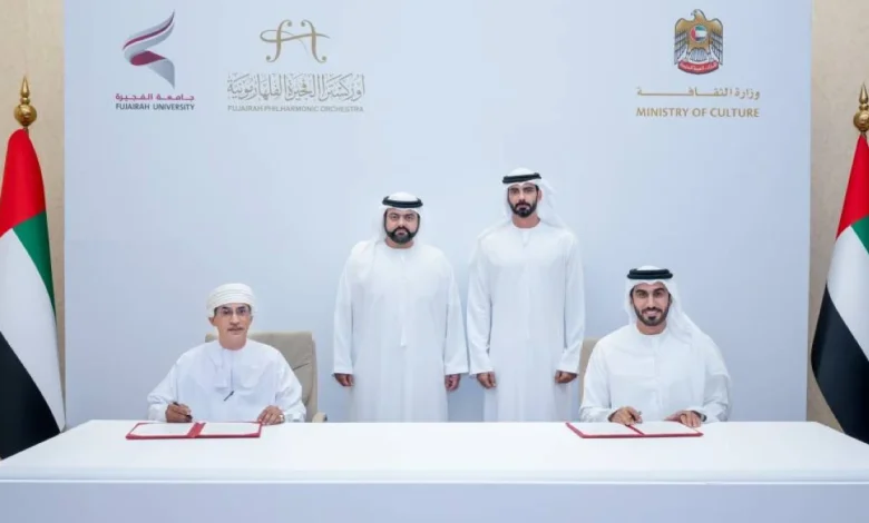 من جانبه، أكد معالي الشيخ سالم بن خالد القاسمي، وزير الثقافة، أن توقيع الاتفاقية مع جامعة الفجيرة وأوركسترا الفجيرة الفلهارمونية يأتي في إطار ترسيخ الشراكات الاستراتيجية بين الوزارة والمؤسسات الأكاديمية والإبداعية في الدولة، ما يدعم المشهد الثقافي والإبداعي ويسهم في تعزيزه واستدامته.