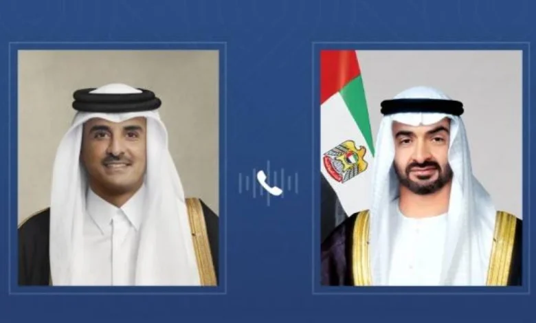 أجرى صاحب السمو الشيخ محمد بن زايد آل نهيان رئيس الدولة اتصالاً هاتفياً مساء اليوم بالشيخ تميم بن حمد آل ثاني أمير دولة قطر الشقيقة، لمناقشة التطورات الراهنة في المنطقة وتداعيات التصعيد الجاري على الأمن والاستقرار الإقليمي والدولي.