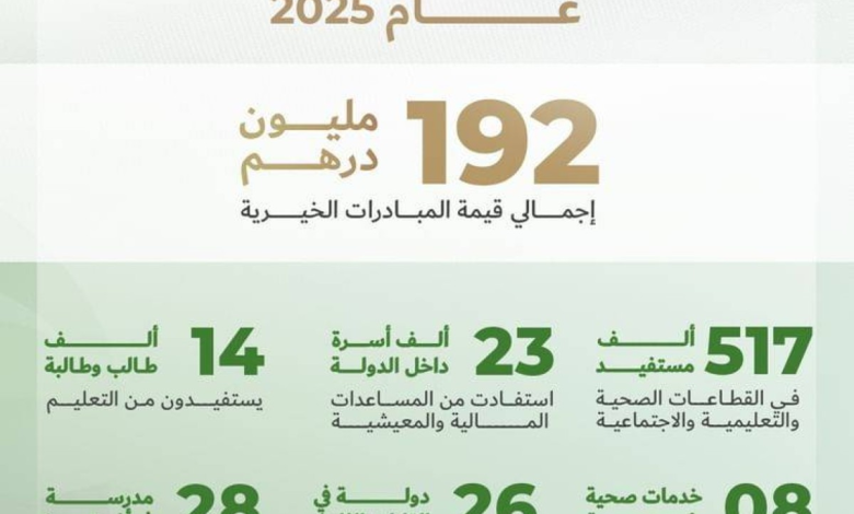 خصصت المؤسسة 192 مليونا و600 ألف درهم كإجمالي إنفاقها خلال عام 2025 وفق التقرير المالي، وشملت المساعدات 26 دولة عبر قارات أفريقيا وآسيا وأوروبا، وتوزعت على القطاعات الصحية والتعليمية والاجتماعية في إطار نهج مركّز على الإنسان أولاً.
