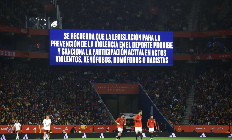 أدان الاتحاد الإسباني لكرة القدم الهتافات المعادية للمسلمين التي رُصدت خلال المباراة الودية بين منتخب إسبانيا ومصر على ملعب آر سي دي إي. في الدقائق العشر الأولى من اللقاء رُصدت مجموعات من الجماهير وهي تردد هتافاً معادياً للمسلمين. تكرر المشهد في الشوط الأول ومطلع الشوط الثاني، وهو ما استدعى تدخل الرسائل عبر مكبرات الصوت داخل الملعب. طلبت الرسائل من الجمهور الامتناع عن أي سلوك عنصري أو تمييزي، بما في ذلك الهتافات ذات الطابع الديني أو العرقي أو الجنسي، إلا أن تلك الرسائل قوبلت بصافرات الاستهجان من بعض الحاضرين.