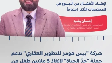 أعلنت شركة بيس هومز للتطوير العقاري أنها انضمت إلى قائمة المساهمين في حملة حد الحياة لإنقاذ 5 ملايين طفل من…