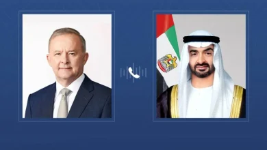 رئيس الدولة ورئيس الوزراء الأسترالي يتبادلان اتصالاً هاتفياً لمناقشة التطورات في المنطقة وتداعياتها على أمنها واستقرارها